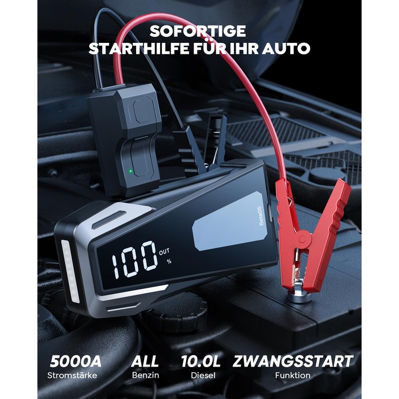 • 5.0 ZOLL DISPLAYMit dem beeindruckenden 5.0-Zoll-display des Beta05 Auto Starthilfe heben Sie sich von der Masse ab, auf dem man den Leistungspegel und den Produktstatus einfach ablesen kann.