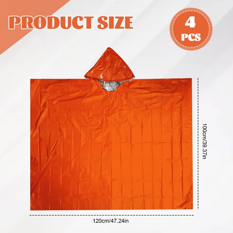 Package includes: 4 x emergency ponchos.