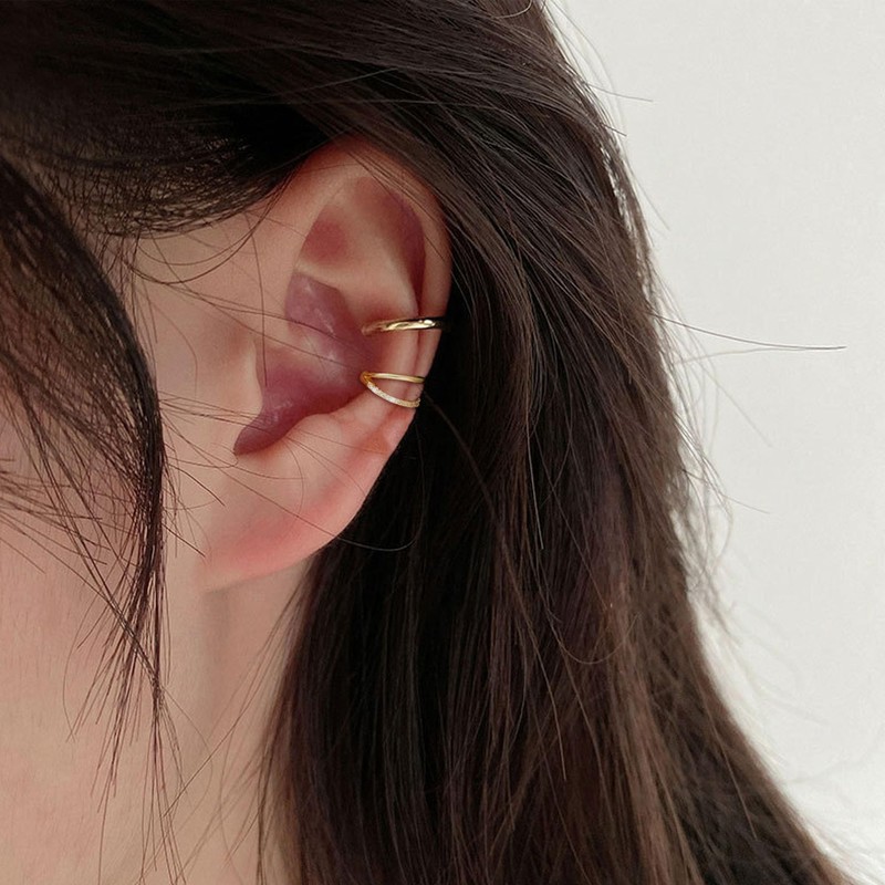 - đă3-piece ear cuffăDesigned for non-pierced ears, this set of earrings is lightweight and comfortable for longer wear. The width of the open side can be easily adjusted with a push or pull of your finger to account for different ear positions.