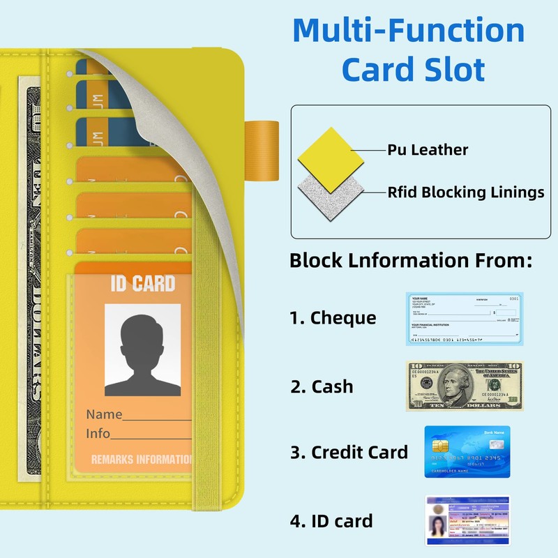 - RFID BLOCKING: Our checkbook cover with advanced RFID blocking technology which can effectively protect credit cards, debit cards, driver license and ID cards from scanning by unauthorized equipmetns. You don't need to worry about leakage of your valuable personal information which is stored in your credit cards and drivers license.