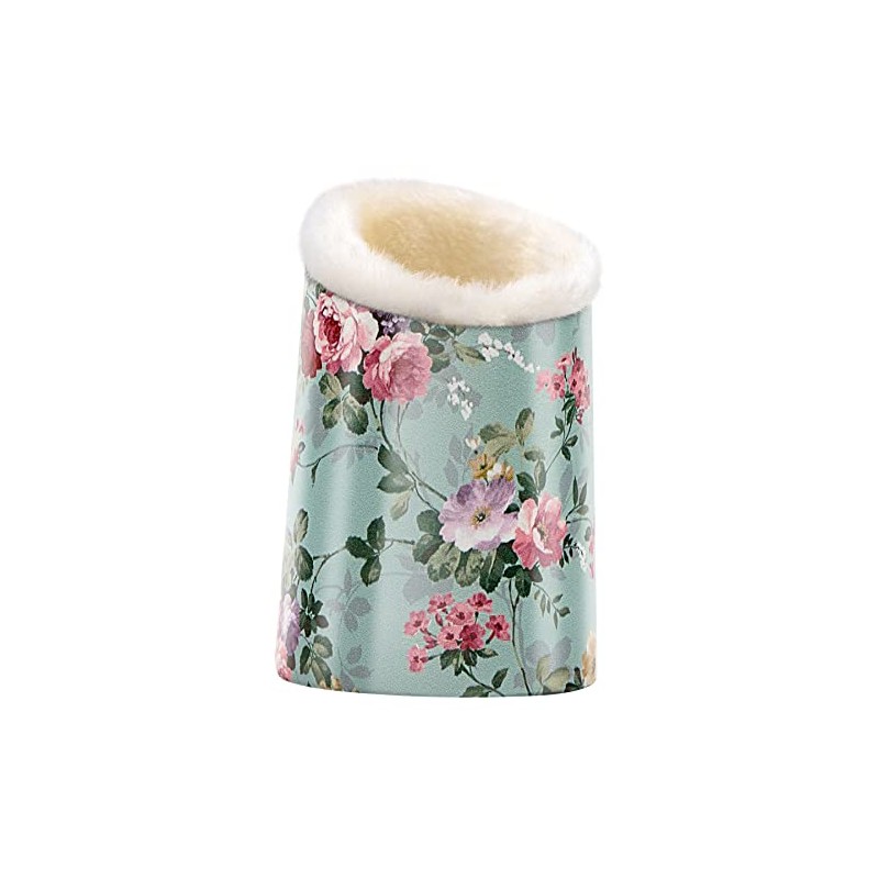 BVYA PU Leather Plush Fluffy Makeup Brush Holder, Cosmetic Brushes Comb Pen Storage Holders Cup with Unique Printed Patterns