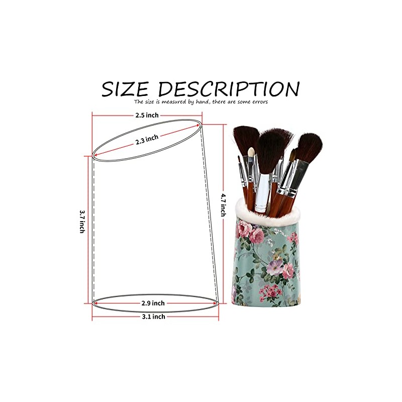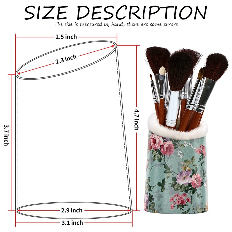 - DESK ORGANIZER: For the size please refer to our size chart photo in the listing. Our makeup brush holder can not only collect your cosmetic like makeup brushes, lipstick, comb but also can store study stationery or office like pens, pencils holders; and others desk things in one place and your desk looks more cleanly.