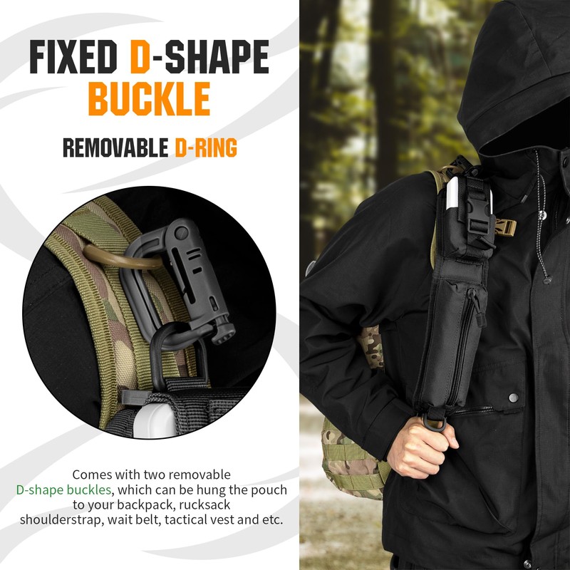 - Package included: 1 strap pouch + 2 D-rings. Suitable for outdoor activities, travel, camping, hiking, trekking, fishing, storage gadgets. Keep essential items organized in close reach.
