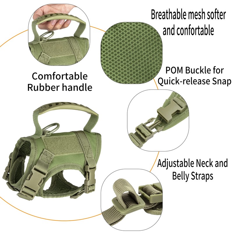 bvya Tactical Nylon Small Dog Vest Harness Adjustable Comfy Mesh Padding Puppy Vest with Quick-Release Buckle and Rubber Handle for Small Dog