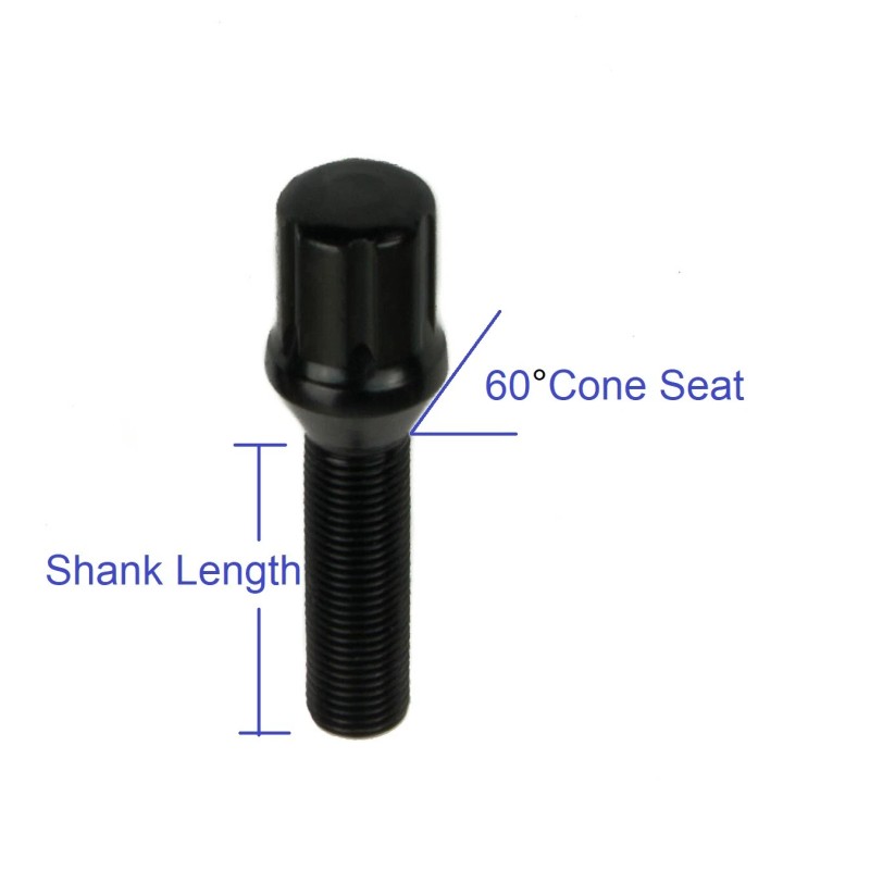 6-Spline Black Cone Seat Lug Bolts