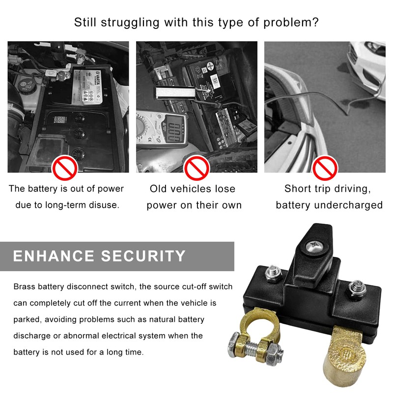 - Power Saving: This battery disconnect switch helps conserve energy by completely shutting off battery output when the vehicle is parked or stored. It eliminates unnecessary power consumption and is especially useful during long-term storage periods such as holidays or extended downtime