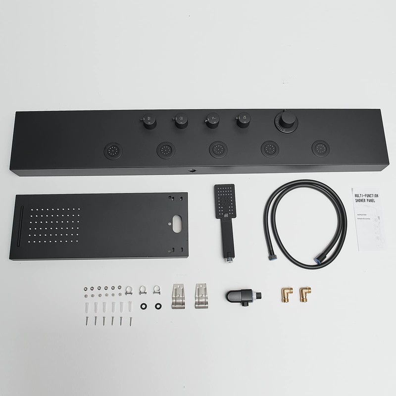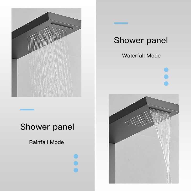 - 【4 IN 1 Shower Panel】This 4-in-1 shower panel system include rainfall shower,waterfall shower, body massage spray jets and handheld shower will soothe your muscle and get you relaxed;