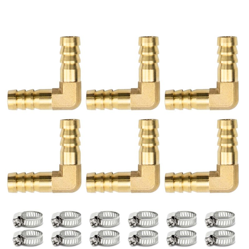 Bwintech 6pcs 12mm Brass 2 Way L Shape Elbow Hose Connector with 12 Clamps