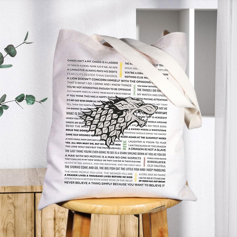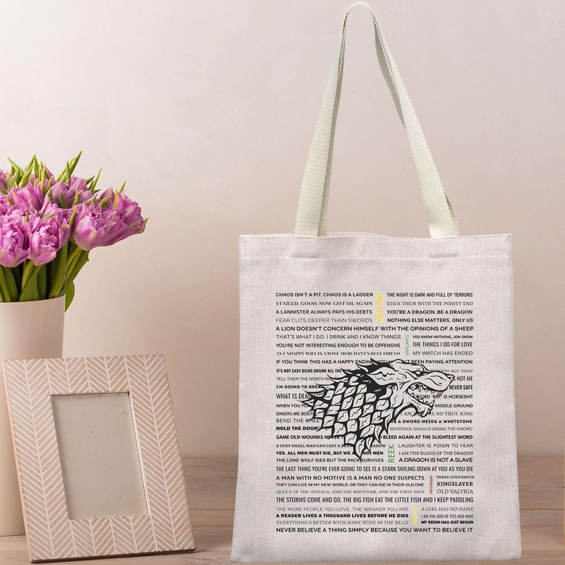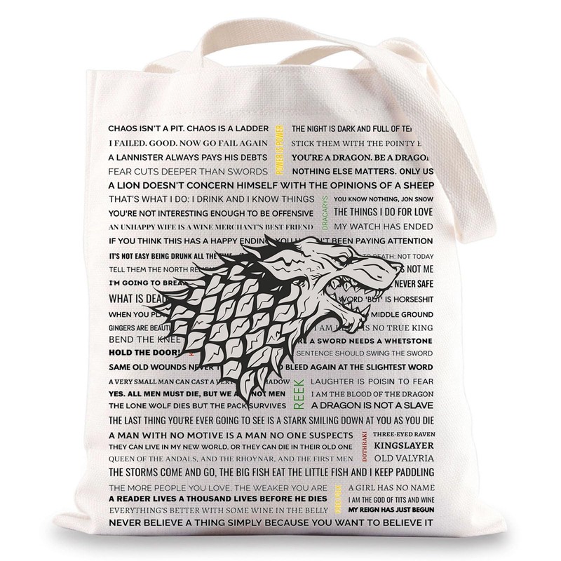 BWWKTOP House Stark Tote Bag Daenerys Targaryen Fans Gift Chaos Is A Ladder Dragon totem Shoulder Bag Mother of Dragon Merch, Chaos is a Ladder, One Size