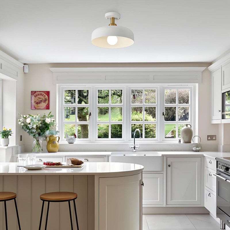 - Design & Product Dimensions:The semi flush mount ceiling Light (Shade Diameter:12.6 inch /32cm,Lamp Height: 8.85 inch /22.5cm ) Made of black on the outside and white on the inside metal shade and gold metal base