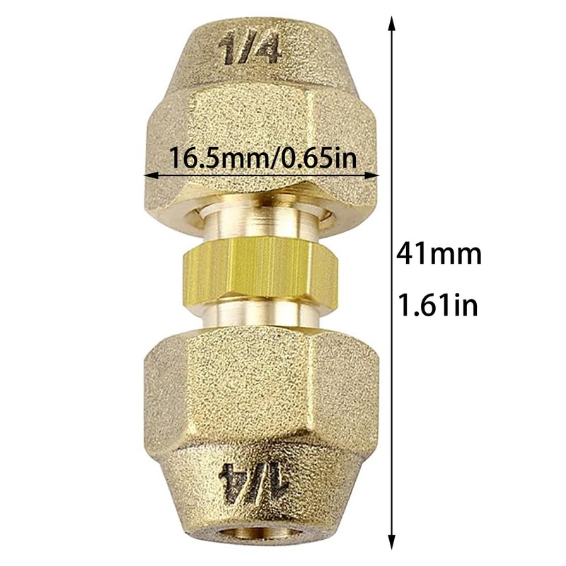 Bxian Solid Brass Pipe Connection Coupling Adapter with Flare Nut and Connector for Butt Copper Pipe Diameter 1/4 inch