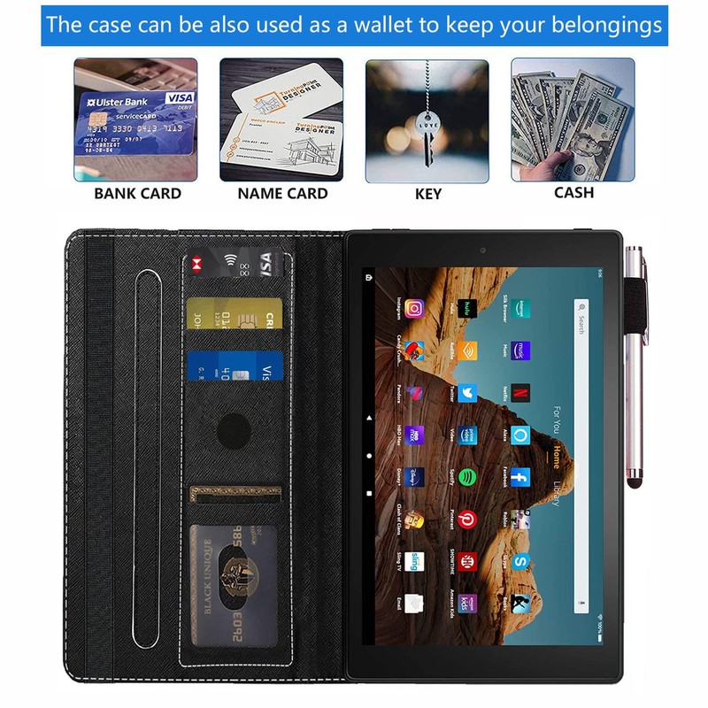 - 【Hands-Free Stand Design】Folding folio design for the fire hd 10 tablet case 2019, Support multi-angle horizontal stand,Free your hands for other activities. Magnetic smart cover supports fast response auto sleep/wake function.