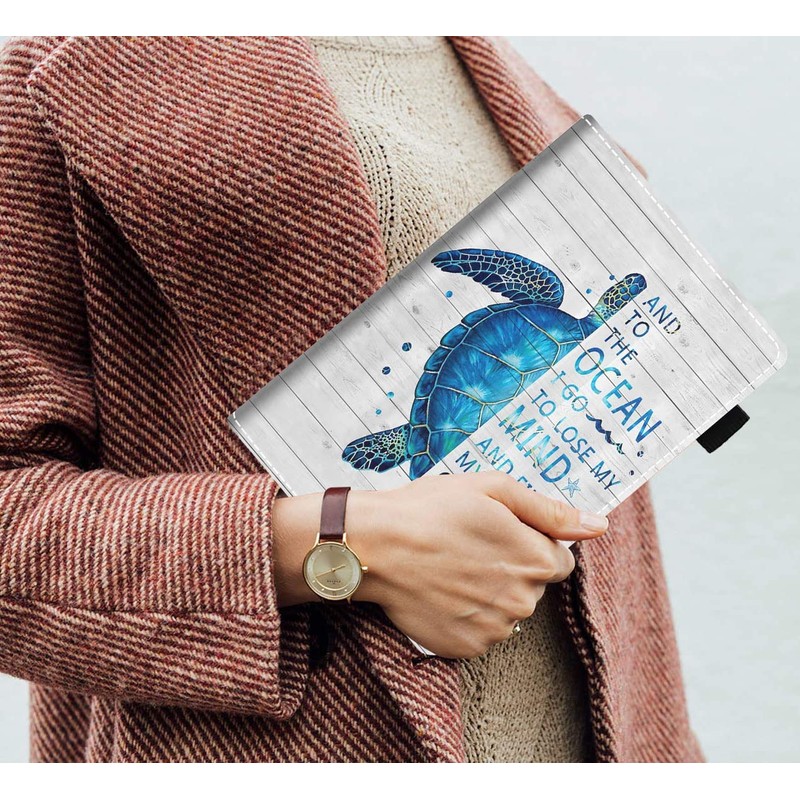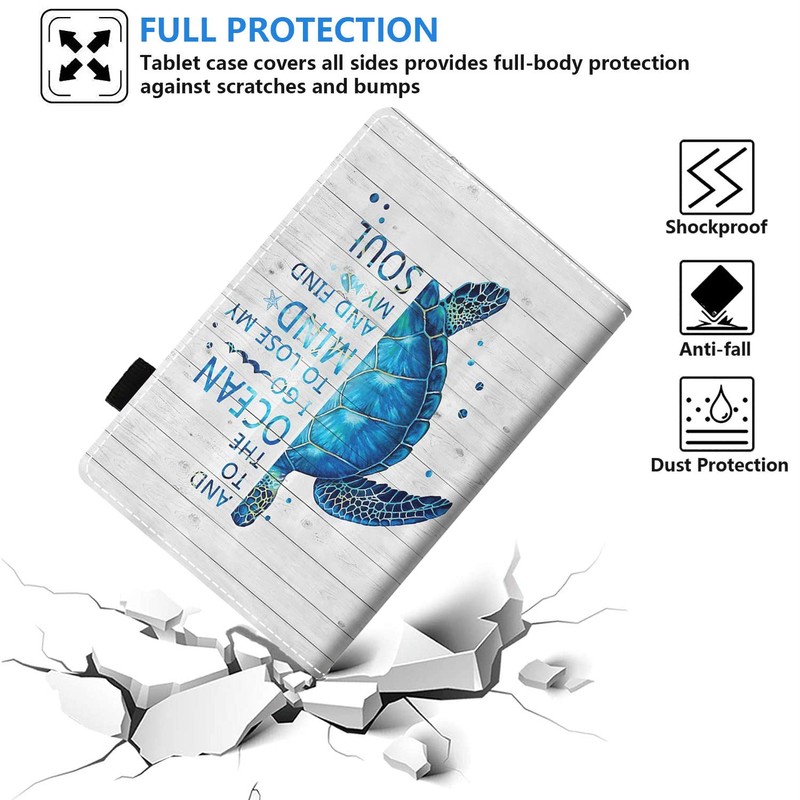 BXIKEOPIU Case for Kindle Fire HD 10 Tablet (10.1 inch, 9th/7th Gen, 2019/2017 Release) - Funny Words with Blue Sea Turtle on Rustic Wooden Board Design Slim PU Leather Cover with Auto Sleep Wake
