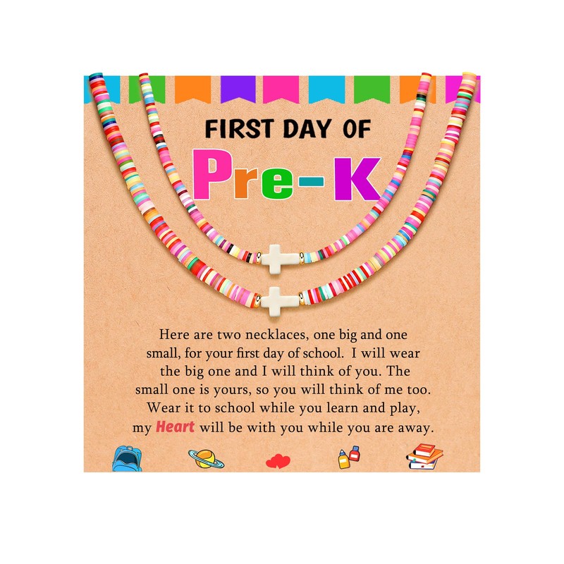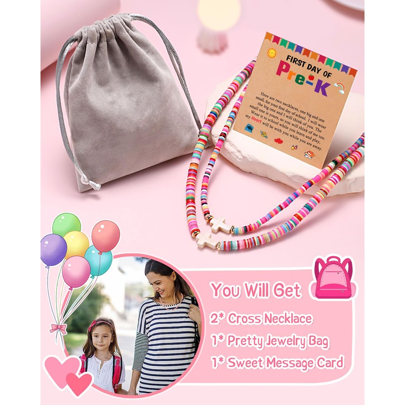 BxkSky First Day of Preschool Pre k Gift Back to School Necklace Mommy and Me First Day of School Mom Mother Daughter Necklace Cross Gifts for Girls