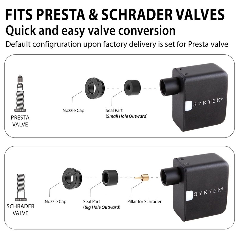 - Ability to inflate up to 2 700x28C tires to 100psi