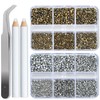Bymitel 7200 Pieces Aurum and Labrdor Rhinestones Flat Back 6 Mixed Sizes Crystal Round Glass Gems with Tweezers and Picking Rhinestones Pen