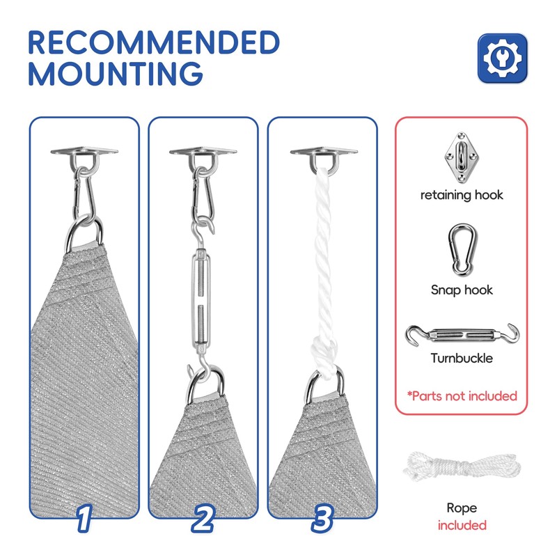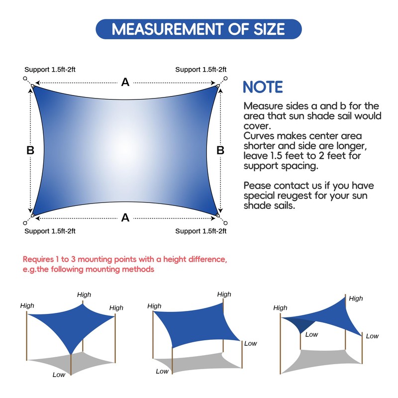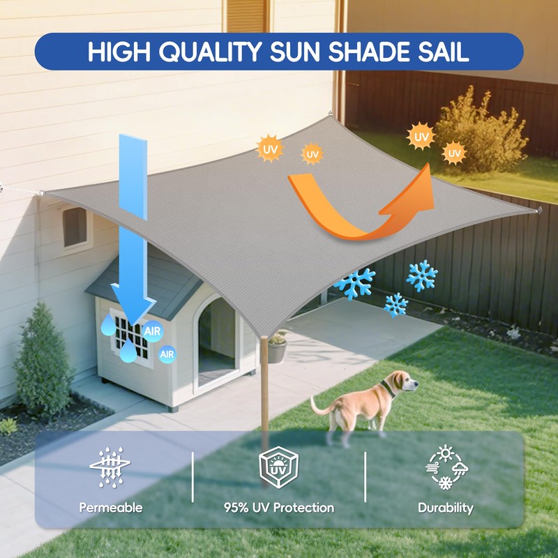 - Versatile Shading: Customizable sunshade suitable for backyard deck, porch, pergola, pool, pond, courtyard, park, carport, sandbox, driveway, gardens and garages. The fabric has shrinkage, and the shrinkage tolerance is ±6 inches on each side