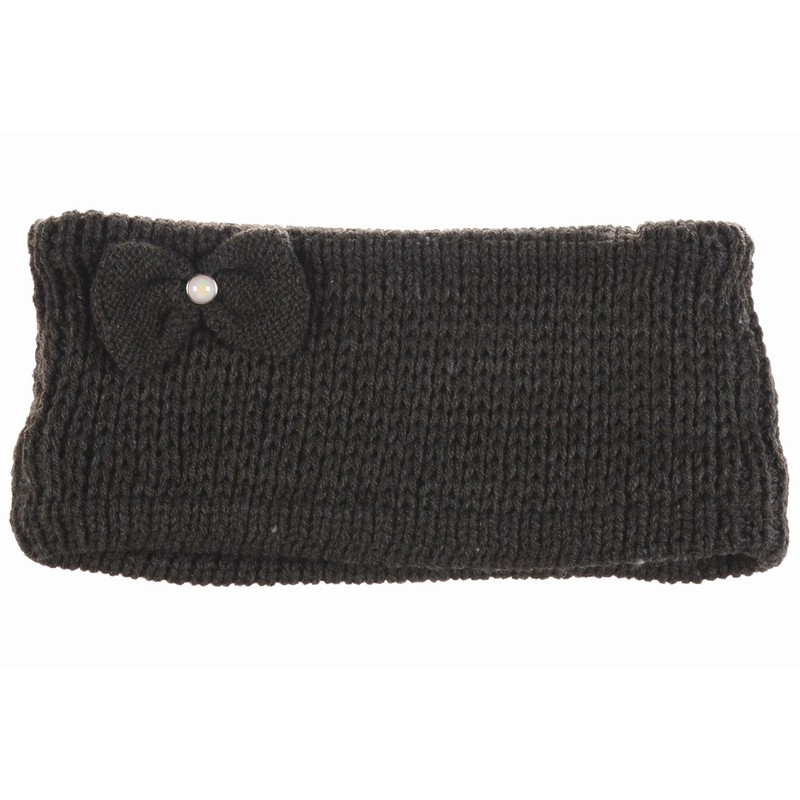 BYOS Winter Cozy Plush Faux Fur Fleece Lined Knitted Headband Wrap Ear Warmer,Various Patterns (Charcoal Gray Pearl Bow)