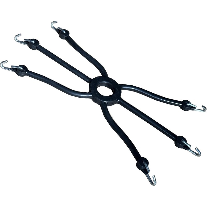 • [Working principle]:Spider bungees work by pulling the slack evenly out of the chain toward the center hub of the bungee.