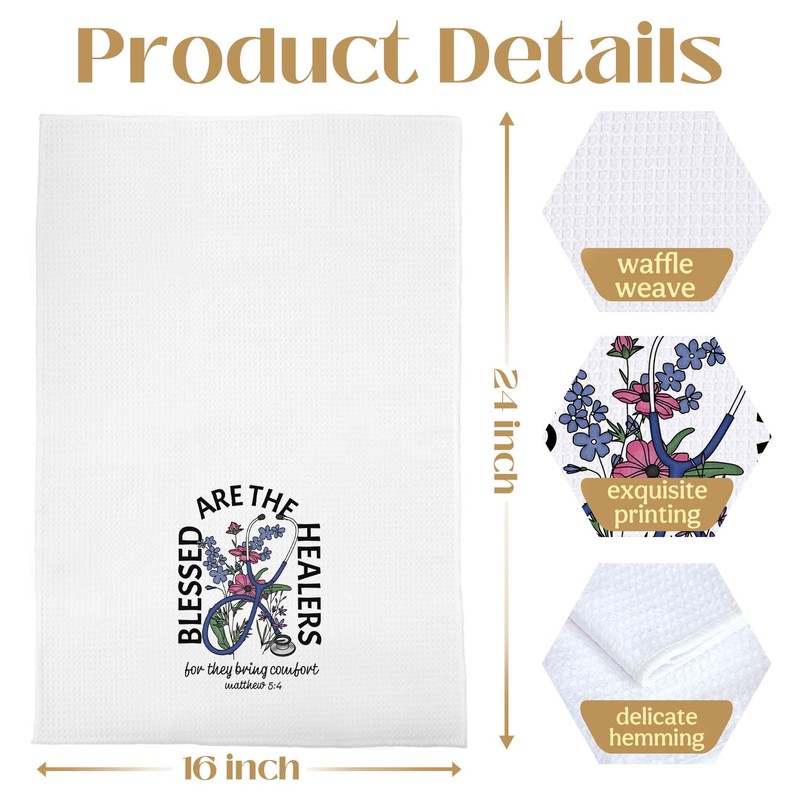 BYRFIIEU Christian Nurse Kitchen Towels, Nurse Appreciation Gifts for Women Dish Tea Towels, Religious Bible Verse Floral Stethoscope Decorative Hand Towel for Bathroom, 16x24 Inches