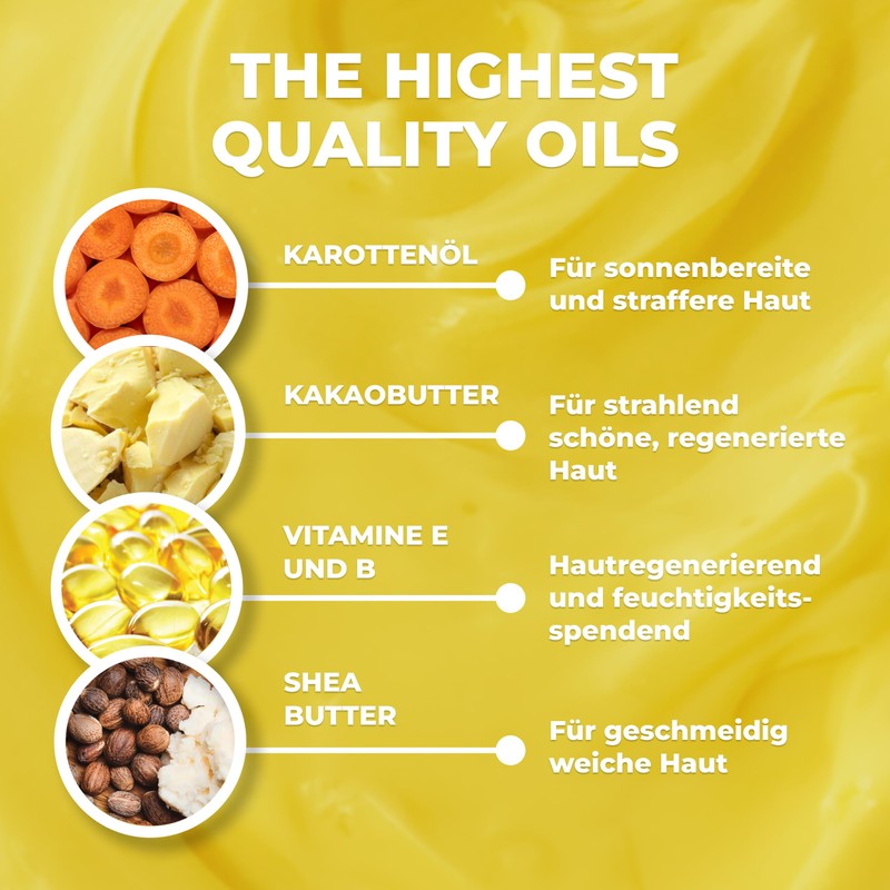 - Wir haben eine tropische Mischung aus ?len und Butter hinzugefgt, die Ihre Haut den ganzen Tag frisch und hydratisiert macht. Diese natrlichen Inhaltsstoffe l?sen alle Probleme mit trockener und unterern?hrter Haut nach dem Sonnenbaden, da sie Ihrer Haut helfen k?nnen, sich schnell zu regenerieren. Unsere Creme pflegt Ihre Haut daher gro?zgig und macht sie wunderbar weich.