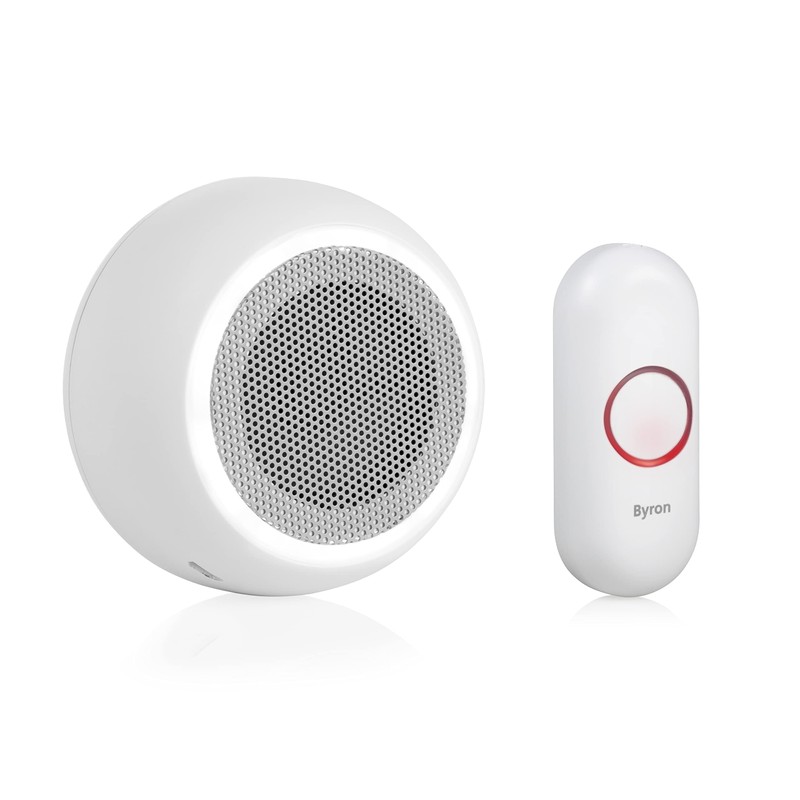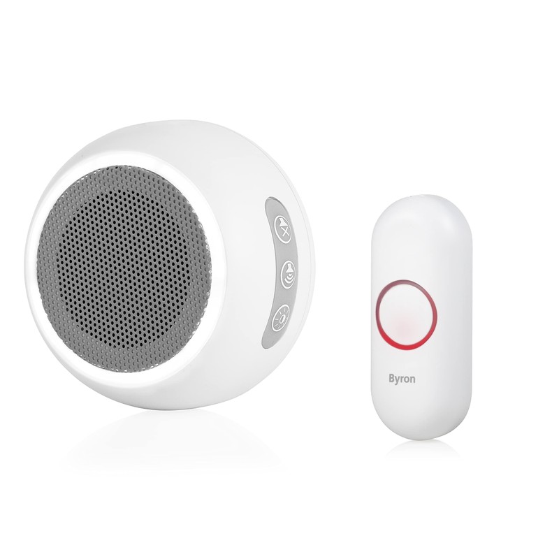 Byron Wireless Portable Doorbell Set, 175 m Range, 8 Melodies, Visual Alert System