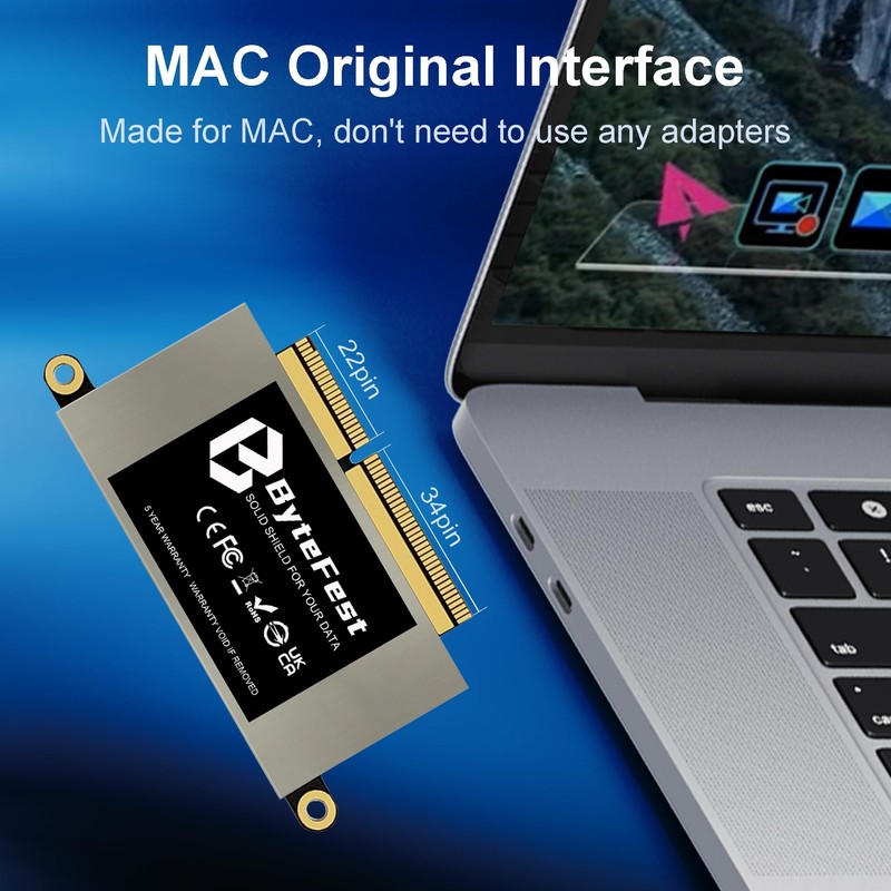ByteFest SSD 1TB NVMe PCIe 3.0x4, Replacement for MacBook Pro Retina 13" A1708 (Late 2016, Mid 2017) EMC 2978/3164 Non-Touch Bar Models