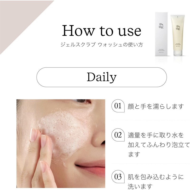 ByUR Bayou Gel Scrub, Wash, Facial Cleansing, Foam, Pores, Moisturizing, Dry Skin, Scrub, Dense Foam, 4.2 oz (120 g), Clean Reset