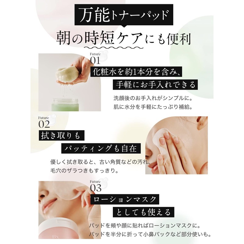 - Toner Pad Feature 3: Can also be used as lotion mask. After blending the entire face with lotion and applying cotton to your cheeks or forehead for a lotion mask. You can fold the pad in half to use it for a variety of purposes such as a small nose pack