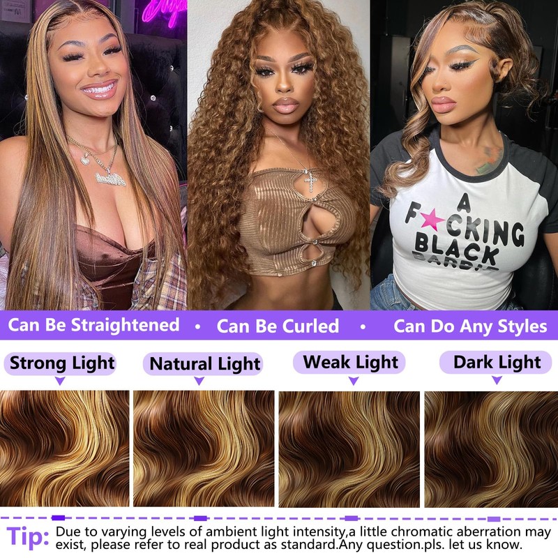 - Stylish for All Occasions: Chocolate brown to honey gold, trendy and confidence-boosting hair colors. Perfect for dates, parties, and everyday wear, Brown and blonde wig human hair is a chic choice for you and your loved ones. Every wig has undergone rigorous quality inspection to ensure order carefree. Wed love to assist anything about hair, install or maintenance, dont hesitate.