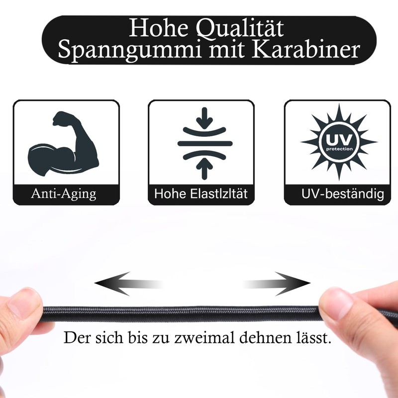 - MULTIFUNCTIONAL EXPANDER WITH CARABINER The two latches of the bungee rope are strong and not only suitable for camping luggage racks, moving suitcases, boats and bike anchors. Also used to repair trash cans, tents, heavy items, tarpaulins, clotheslines, gardening, furniture and outdoor activities
