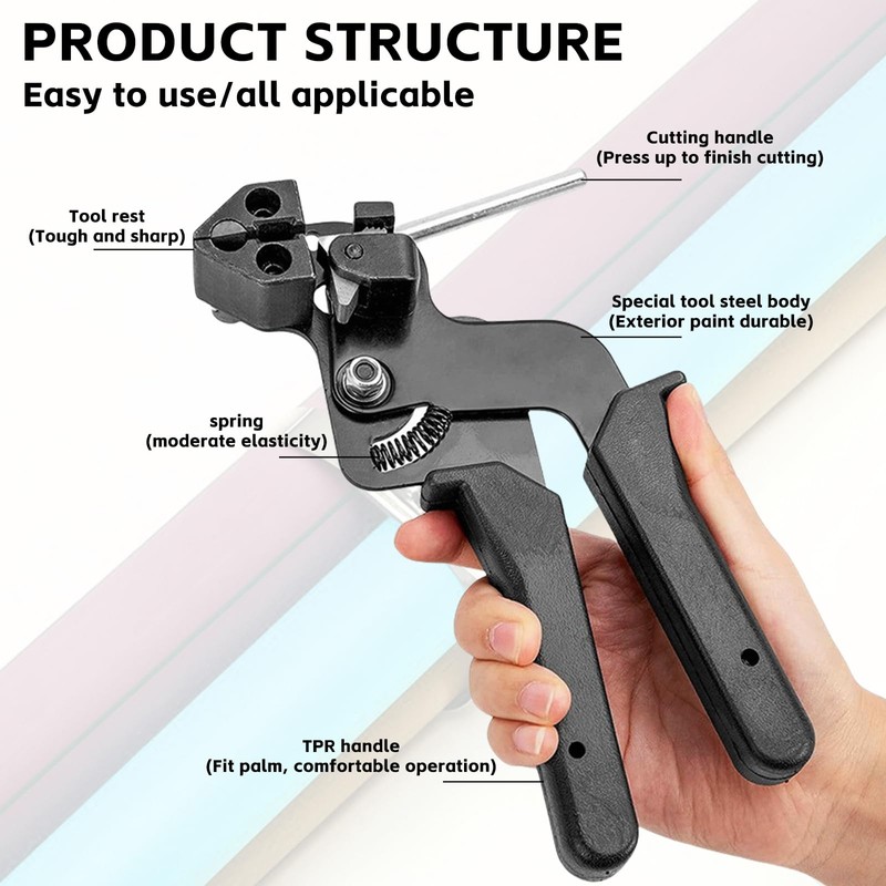 - Safe and easy to use: after tensioning the cable tie, simply place the protruding end on the blade and pull the lever up to cut it effortlessly. You can cut the stainless steel cable tie as needed without leaving sharp edges, safe and energy-saving.