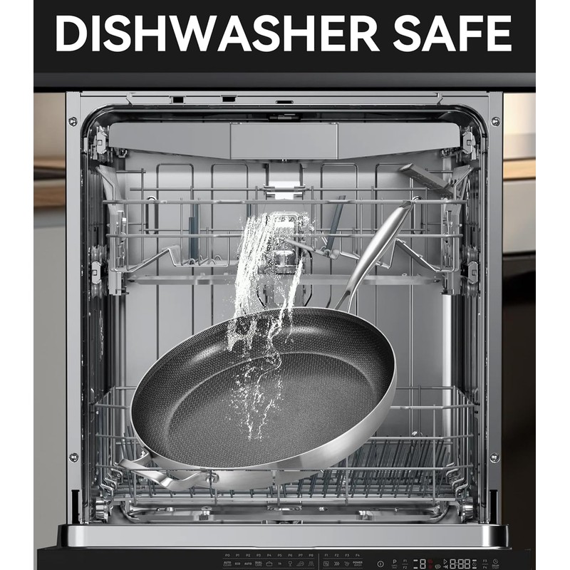 - 【Premium Durability】Crafted with high-grade stainless steel, our pan is designed for enduring use. The non-toxic surface ensures a safe and efficient cooking experience. For added convenience, these pans are also dishwasher safe