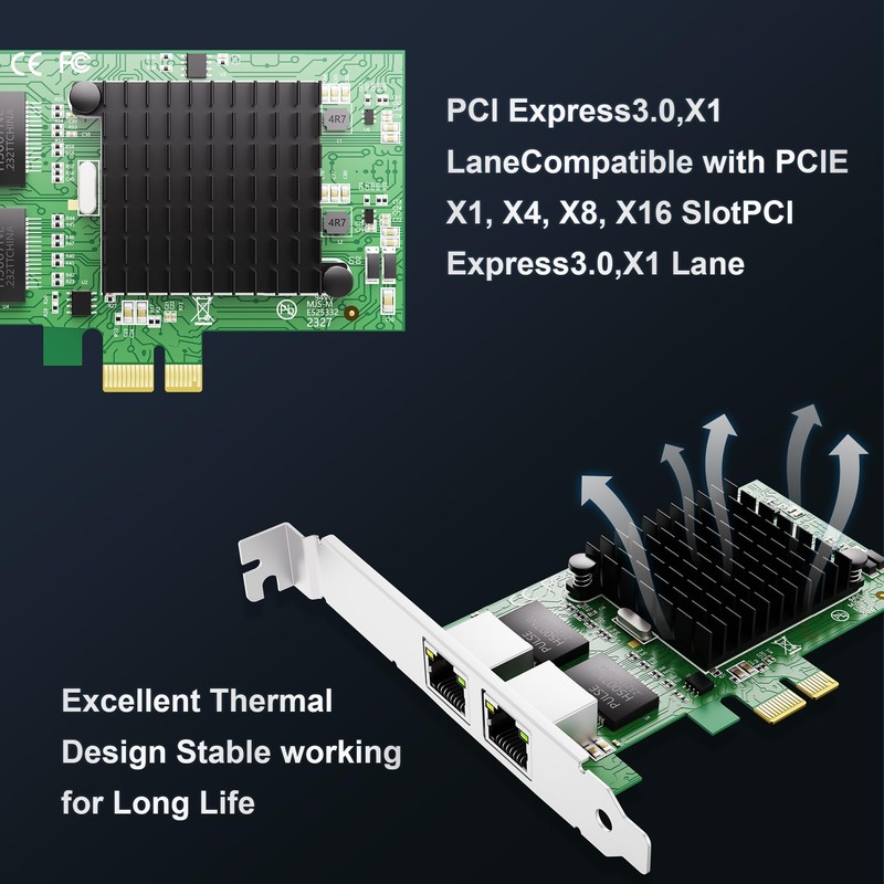 • High-Performance Dual-Port Design: This PCIe Gigabit Network Card features the advanced Intel 82575 chipset, offering two independent RJ45 ports with up to 1Gbps transfer rates, ensuring smooth data transmission and ideal for high-speed data processing and large file transfers.