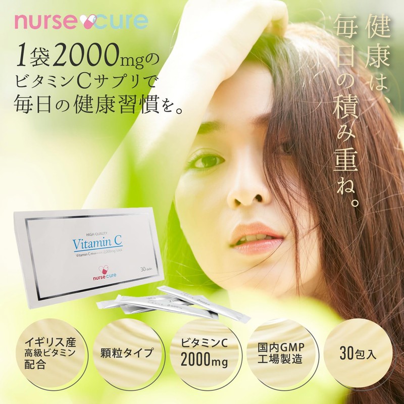 ナースキュア ビタミンC 顆粒 サプリメント (1包 2000mg / イギリス産原料) ビタミン ミネラル サプリ エイジングケア (30包 / 1ヶ月分)