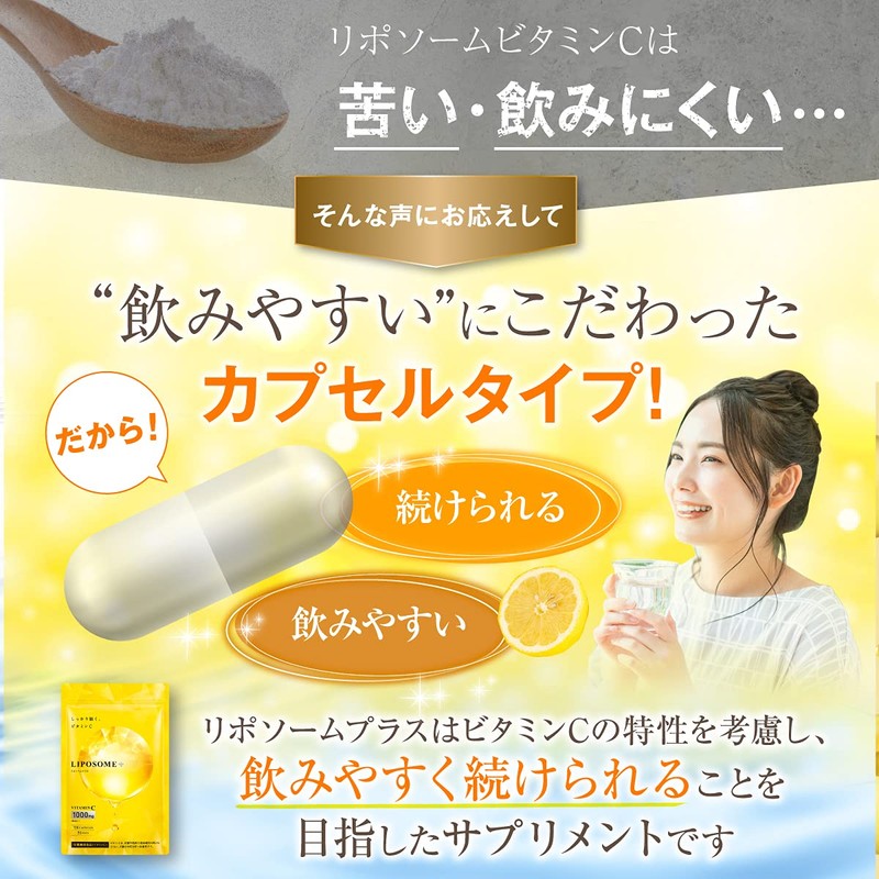 - ✅【栄養機能食品・ビタミンCが1日1000㎎の高配合】リポソームプラスは1日あたりビタミンCの量が1000㎎!!レモン50個分に相当する1,000mgのビタミンCを配合。(レモン1個あたりビタミンC20mg換算)ビタミンCの栄養機能食品になります。配合に徹底的にこだわっています。