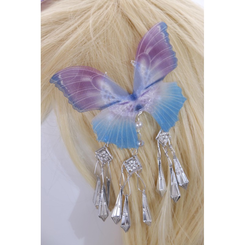 C-113 Blue Purple Butterfly Wings Hair Clips Fairy Hanfu Party Celebration Hair Accessories Head Accessory