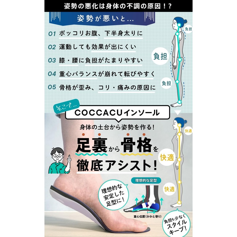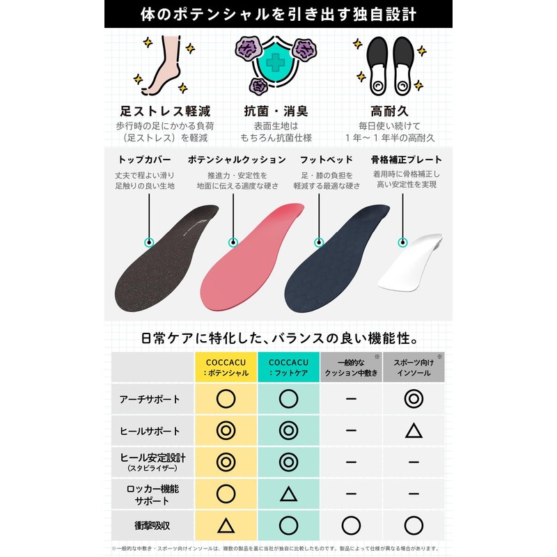 骨格インソールポテンシャル【理学療法士開発】足・膝の負担軽減&姿勢補正 疲れない 立ち仕事 美姿勢サポート 衝撃吸収 土踏まず かかとサポート 抗菌 男女...