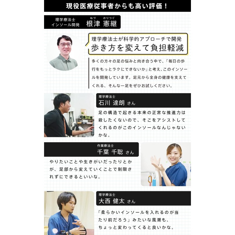 • ✅【歩き方から変え、全てのエネルギーを推進力に】4,000人以上の足データを基に設計された骨格補正プレートが足の動きをコントロール。歩幅・歩行スピードをアシストし、ふらつきを抑え、歩き方を変えていきます。