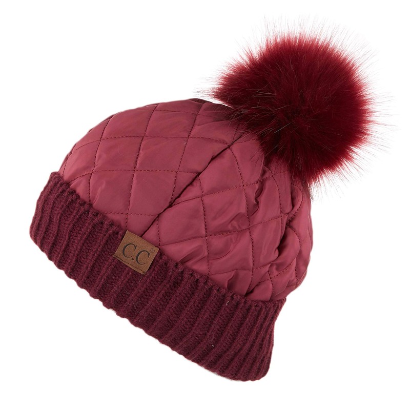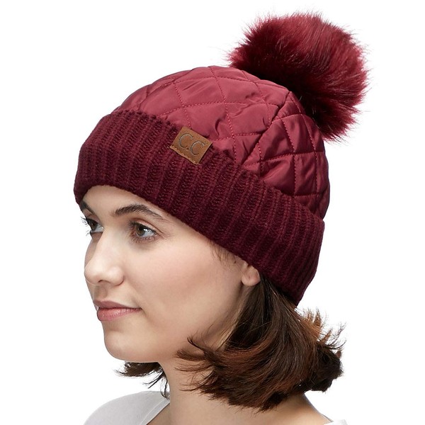 C.C Exclusives Ribbed Knit Padded Pom Beanie Hat (HAT-1739) (Burgundy)