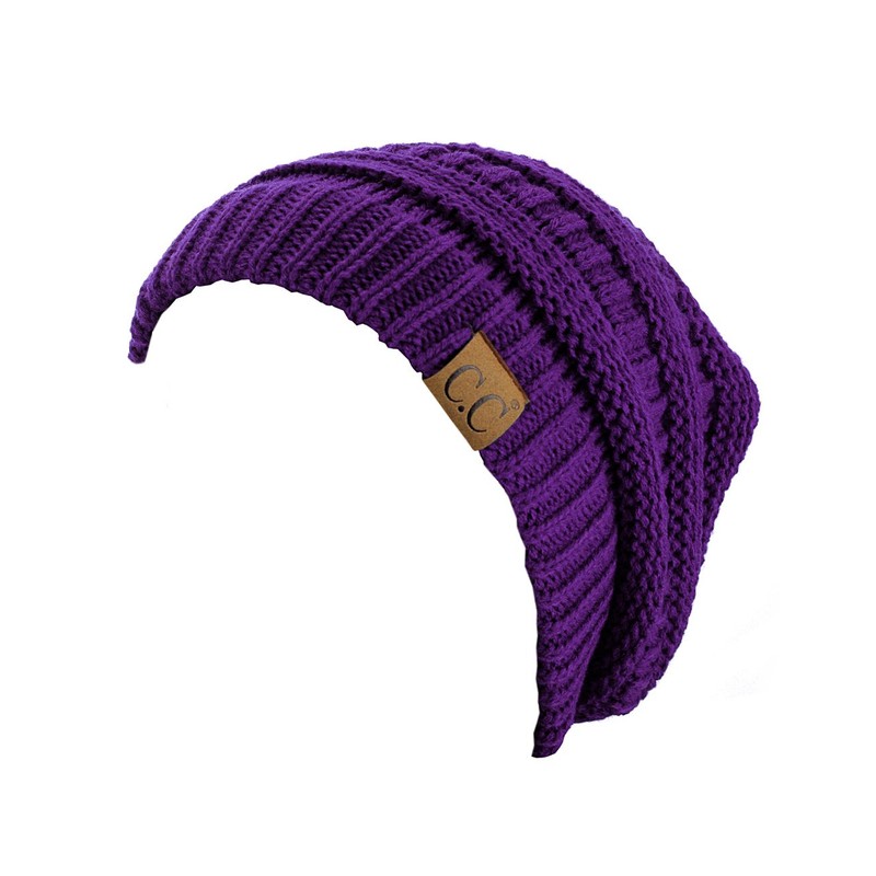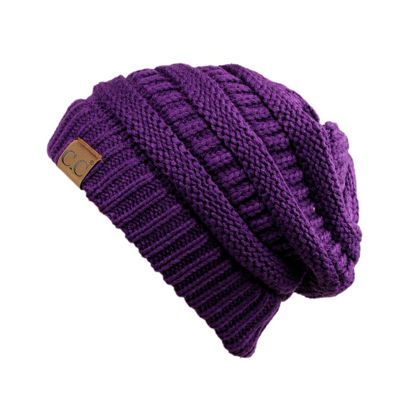 C.C Gorro de punto trenzado, grueso, suave, elástico, cálido, Violeta intenso, Talla única