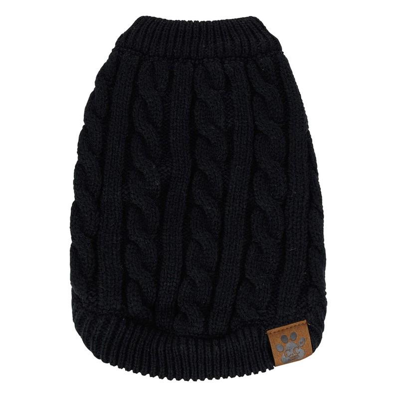 C.C Pet Solid Ribbed Cable Knit Pullover Winter Clothes Dog Sweater-Black-XS
