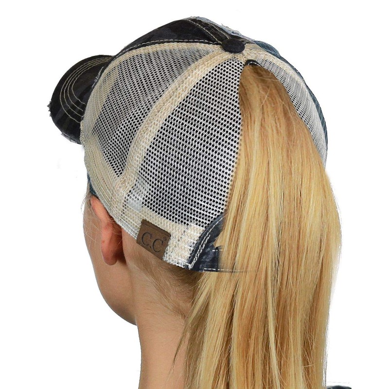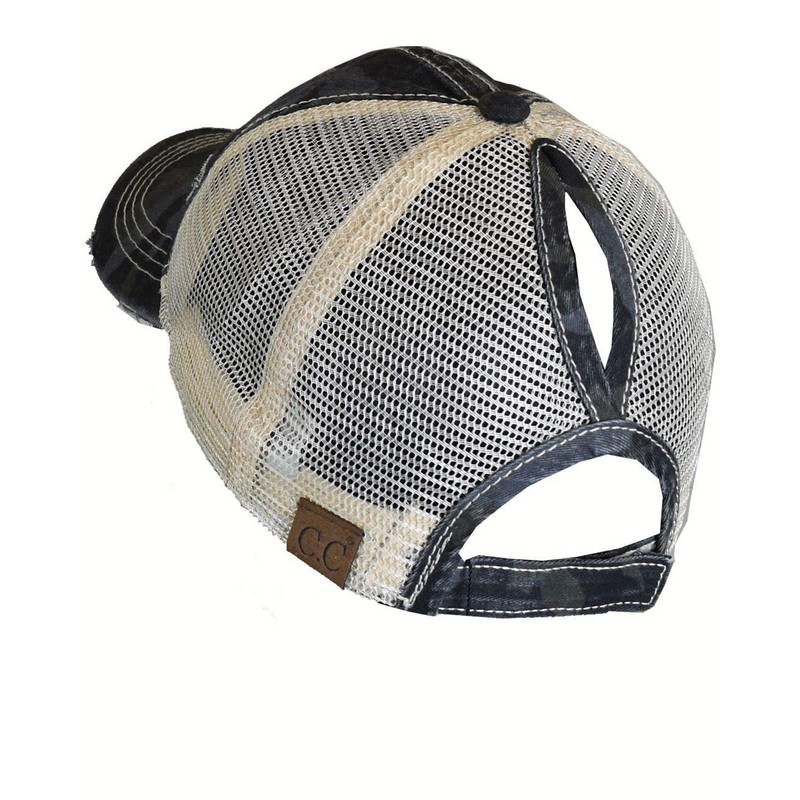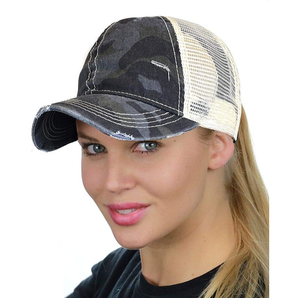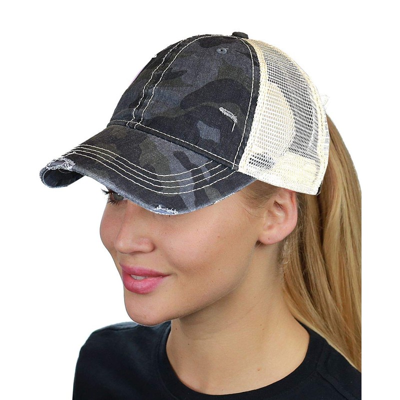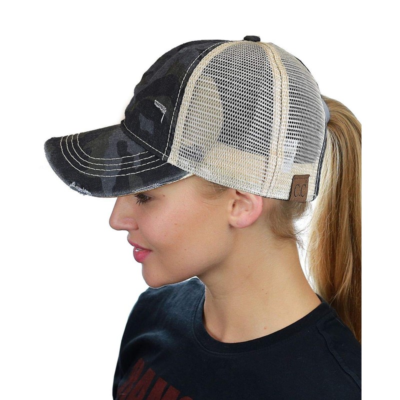 C.C Ponycap Messy High Bun Ponytail Adjustable Mesh Trucker Baseball Cap Hat, Camo Black