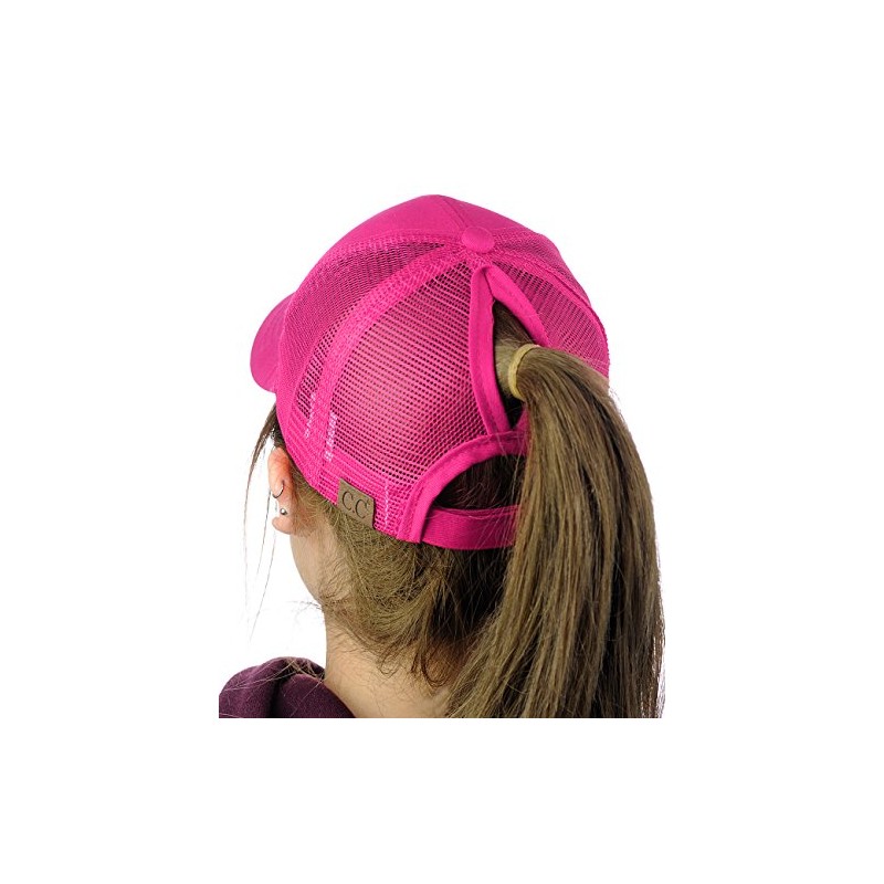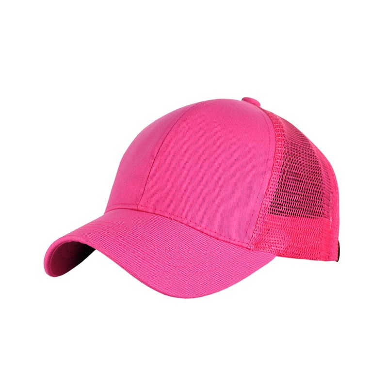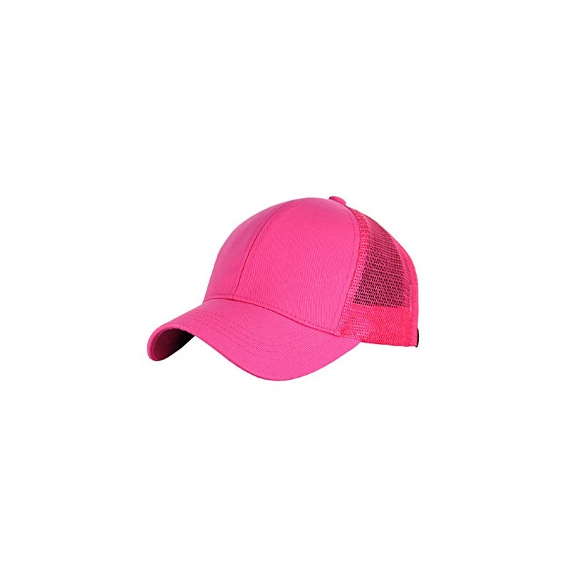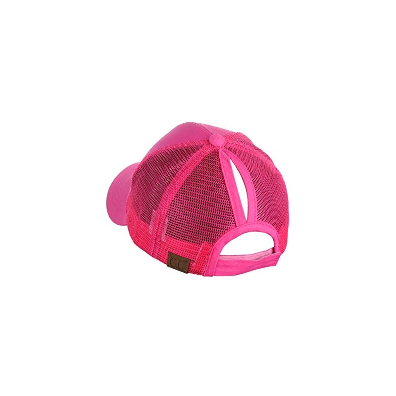 C.C Ponycap Messy High Bun Ponytail Adjustable Mesh Trucker Baseball Cap Hat, Hot Pink