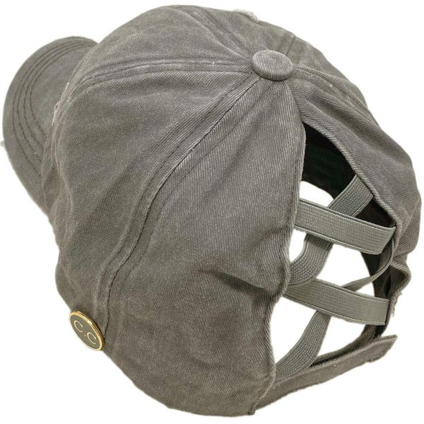 C.C Ponytail Criss Cross Messy Buns Ponycaps Baseball Cap Dad Trucker Mesh Hat (Button Hook Distressed Gray)