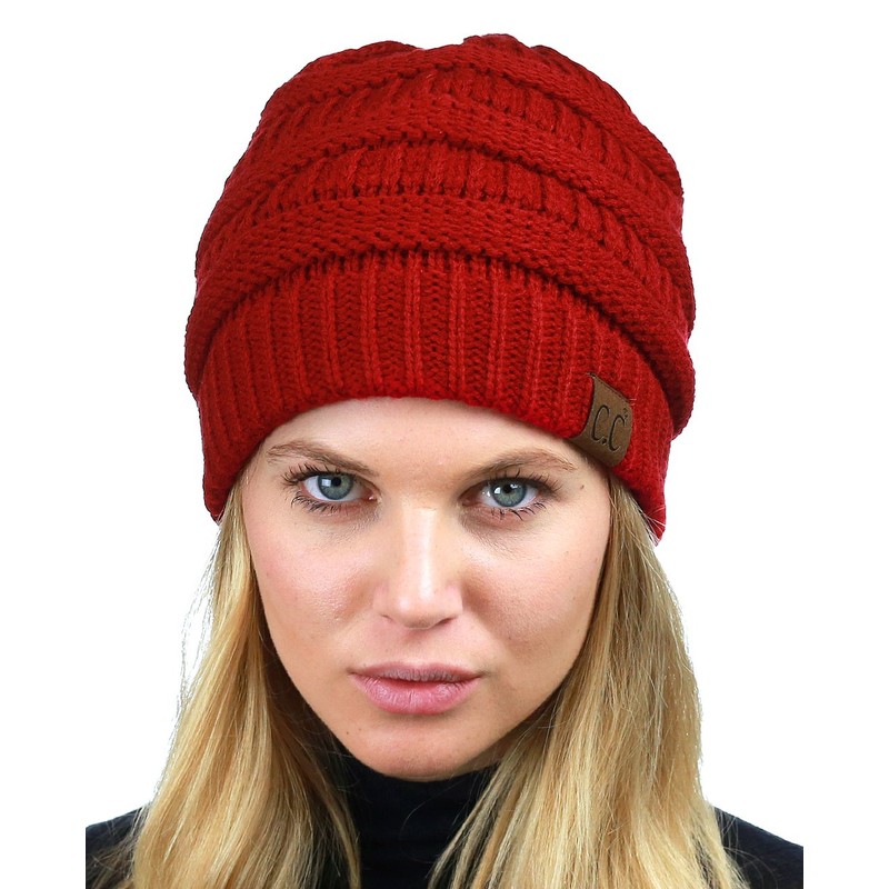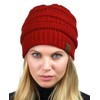 C.C Unisex Chunky Soft Stretch Cable Knit Warm Fuzzy Lined Skully Beanie, Red