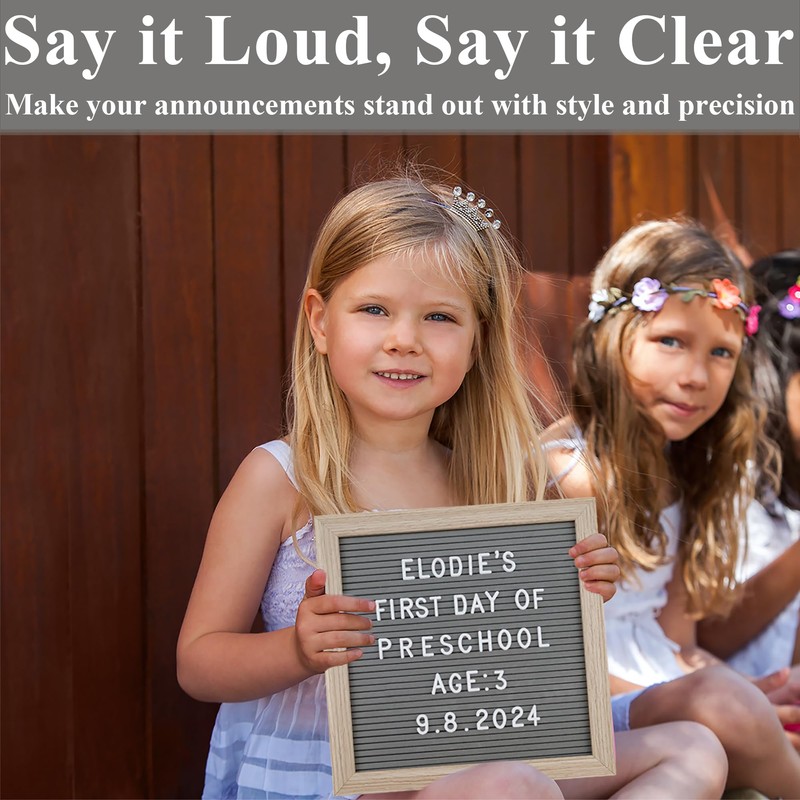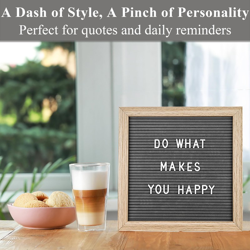 C CRYSTAL LEMON Letter Board by Crystal Lemon, 336 Letters Numbers & Symbols, Felt Letter Board, 10x10 Inches, Changeable Wooden Message Board Sign, Wood Frame, Wall Mount, Free Standing(Gray)