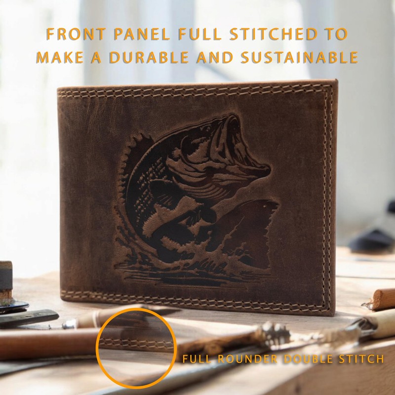 - FISH EMBOSSED DESIGN – Expertly crafted from full-grain hunter leather, known for its exceptional durability, rich texture, and luxurious look, the wallet develops a unique patina with use, ensuring it becomes even more beautiful with time.