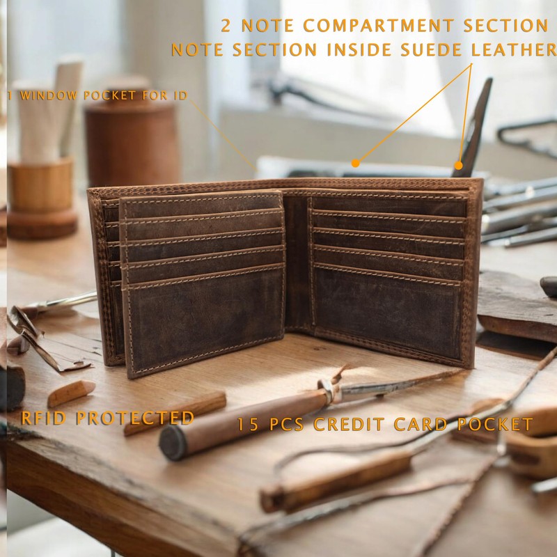 - MULTI-POCKET DESIGN – Thoughtfully organized with 15 dedicated card slots, 1 transparent ID window pockets, and 2 spacious note compartments lined with soft suede. This design ensures secure storage and easy accessibility for all your essential items.