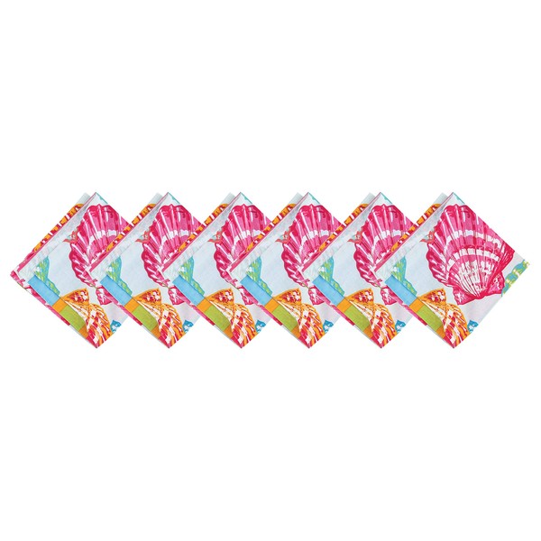 C&F Home Merritt Island Napkin Oversized Reversible Cotton Dinner Cloth Napkin Nautical Coastal Shells Sea Life Tropical Set of 6 Napkin Set of 6 Pink